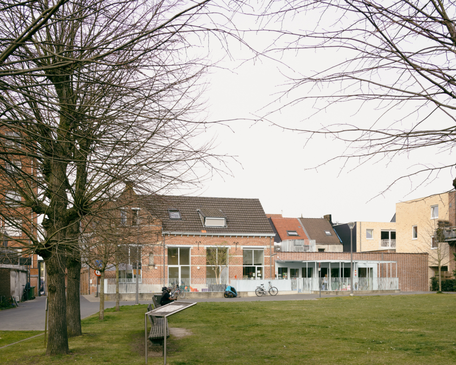 De publieke binnentuin is opgevat als een groene buitenkamer, omarmd door de bestaande tuinmuren en de nieuwe gebouwen. Het pad dat de verbinding maakt tussen de Sint-Rochus-site en de Mercatorstraat, loopt door die tuinkamer.